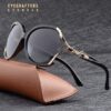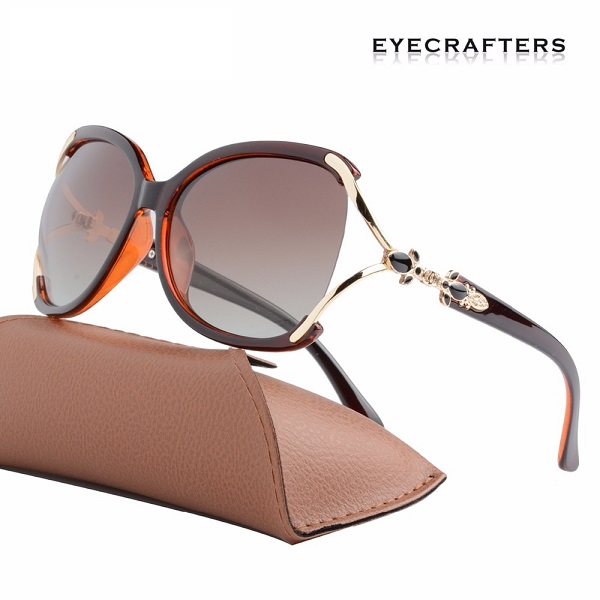 Елегантни дамски очила EYECRAFTERS с овална форма на рамката, предлагат се в четири варианта. Рамката е от пластмаса, а стъклата от поликарбонат. Стъклата са поляризирани, в съответния цвят и подобряват защитата на окото в слънчеви дни. Рамката е с декоративен златист елемент.