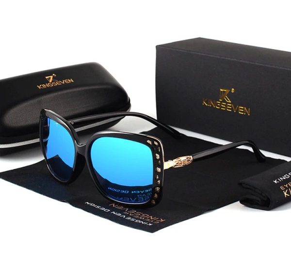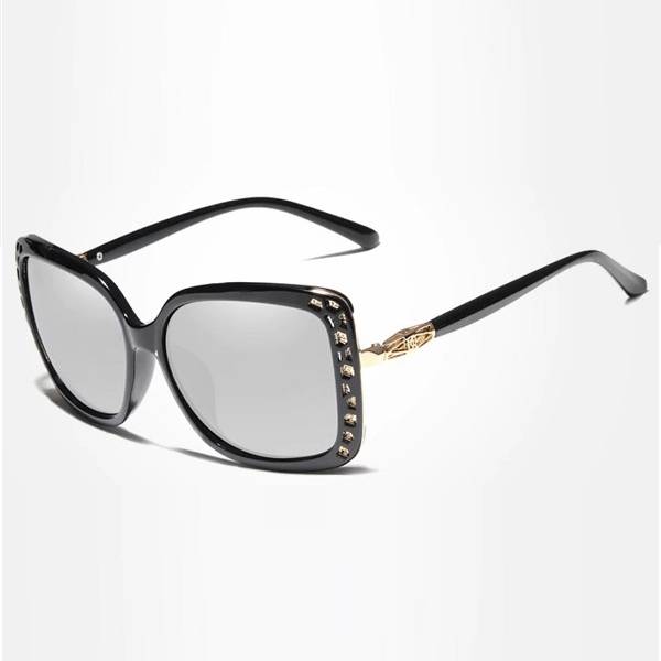 Слънчеви очила с рамка тип “Пеперуда” и полароидни, огледални стъкла. Рамката е олекотена, от пластмаса, с декоративни златисти елементи . Технически параметри: