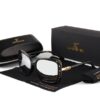 - В комплекта се включва: картонена кутия, кожен твърд калъф, текстилна опаковка, мека кърпа за очила, указание за продукта.