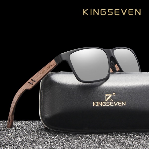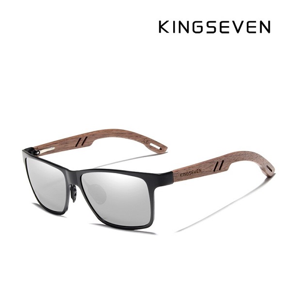 Ефектни слънчеви очила с продълговата, издължена рамка и полароидни стъкла. Рамката е от алуминий, с ръчно изработени дръжки от орехово дърво. Технически параметри:
