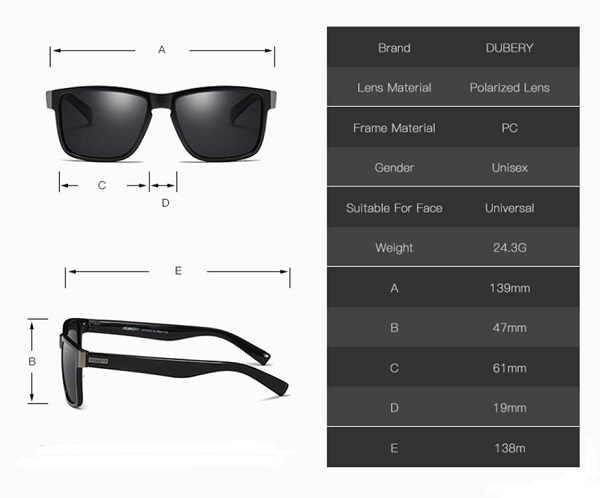 Цветни слънчеви очила Dubery с огледални, поляризирани, поликарбонатни стъкла. UV защита и цветна ацетатна рамка. Технически параметри: